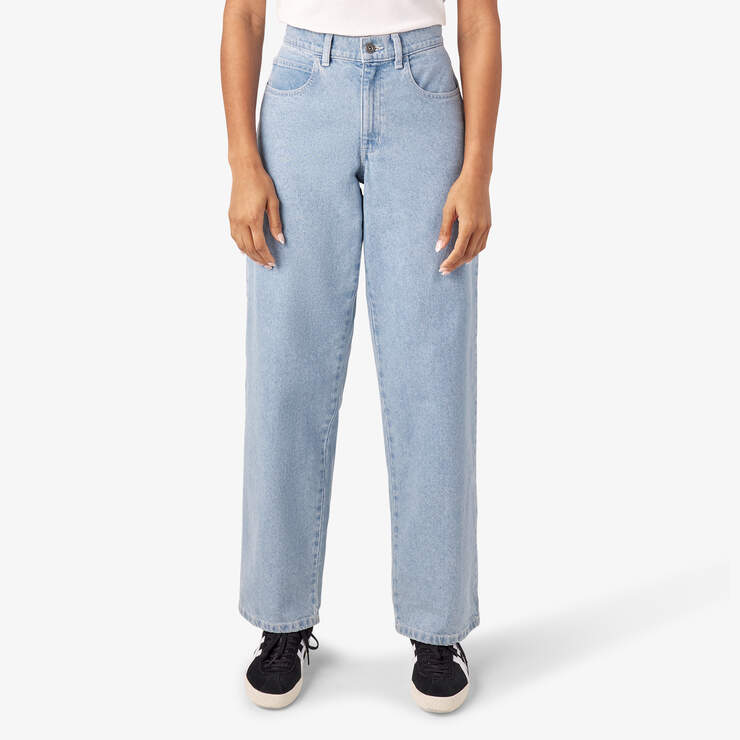These women’s jeans are crafted from 100% cotton denim and features a mid-rise, loose fit, and straight leg style. The jeans are finished with utility styling for an authentic workwear look.