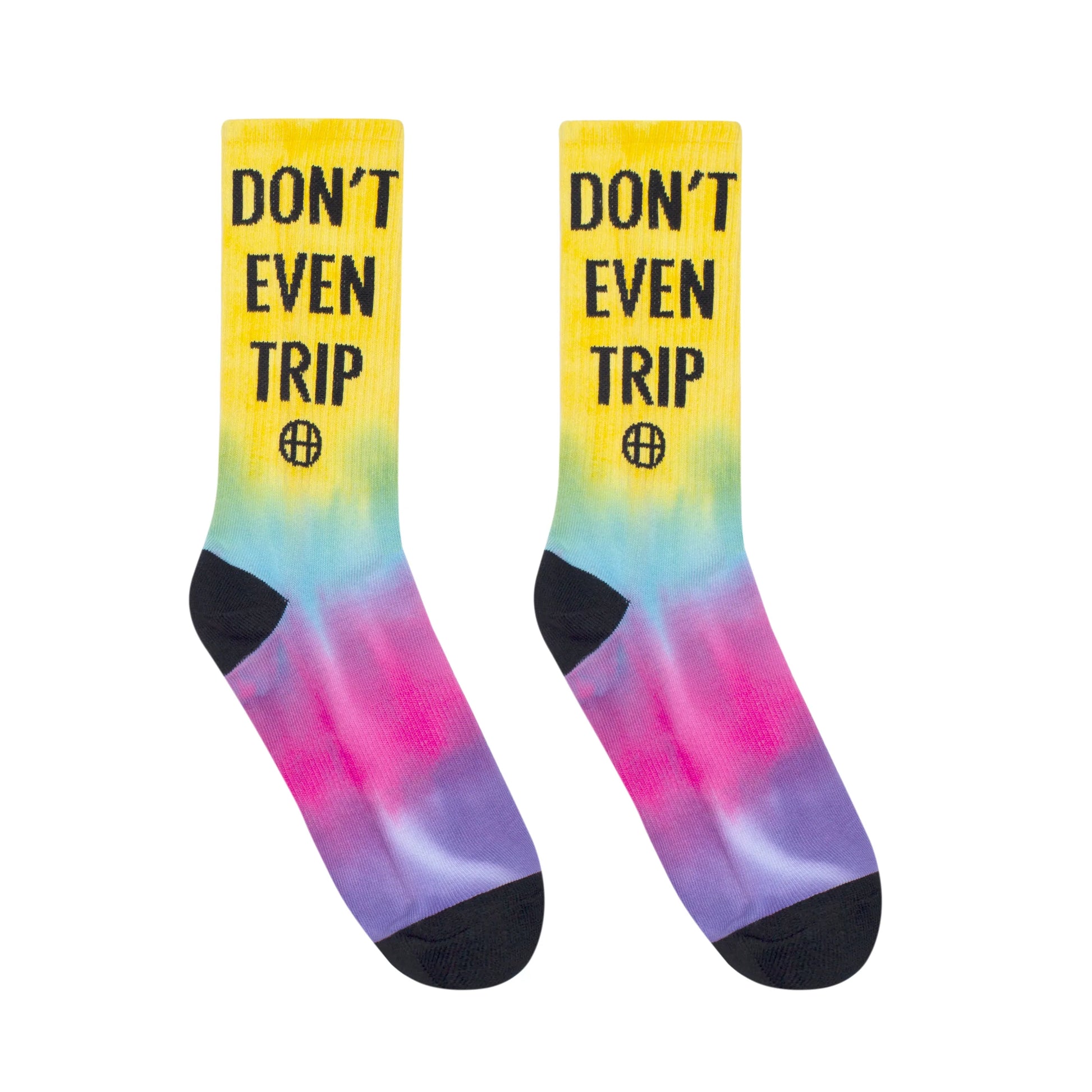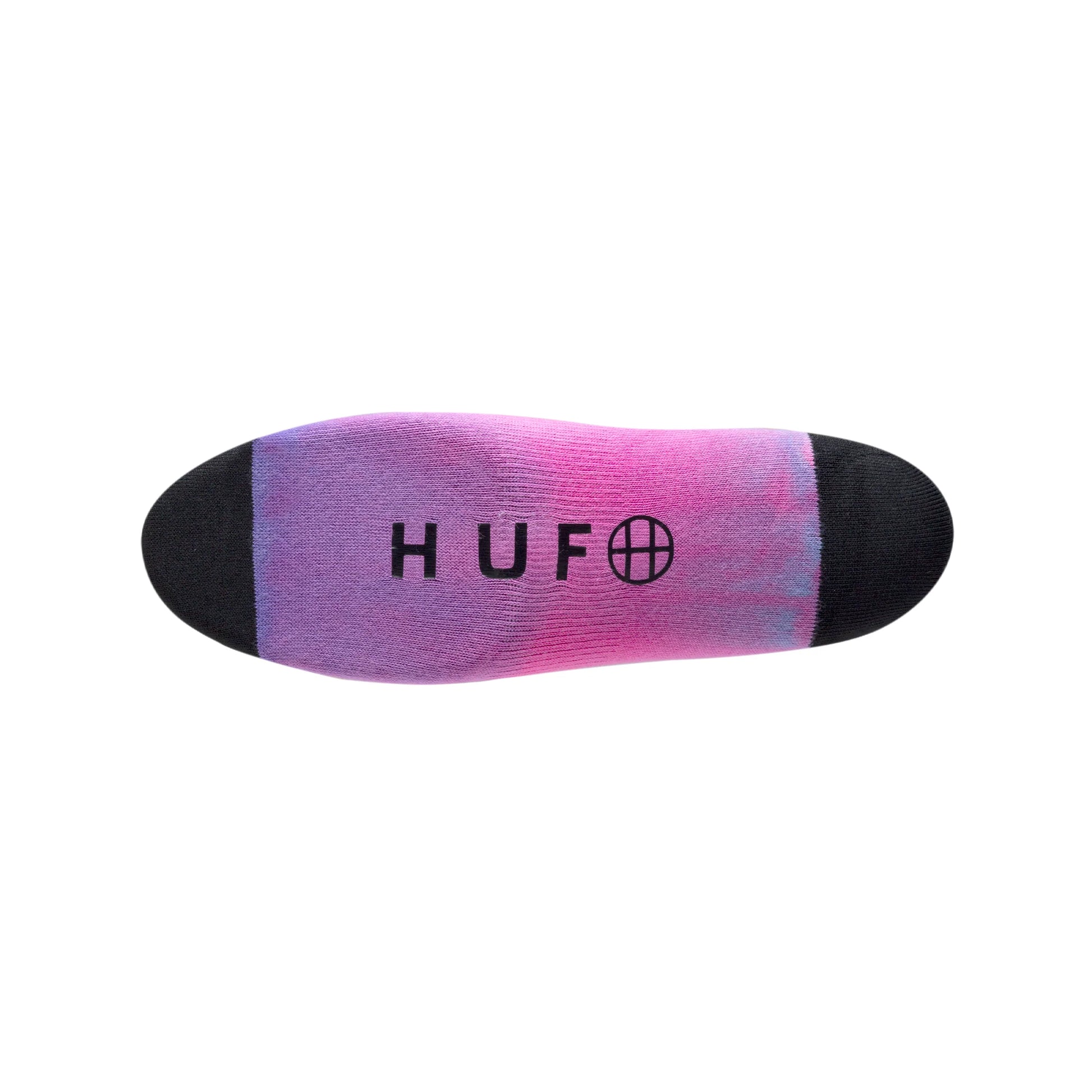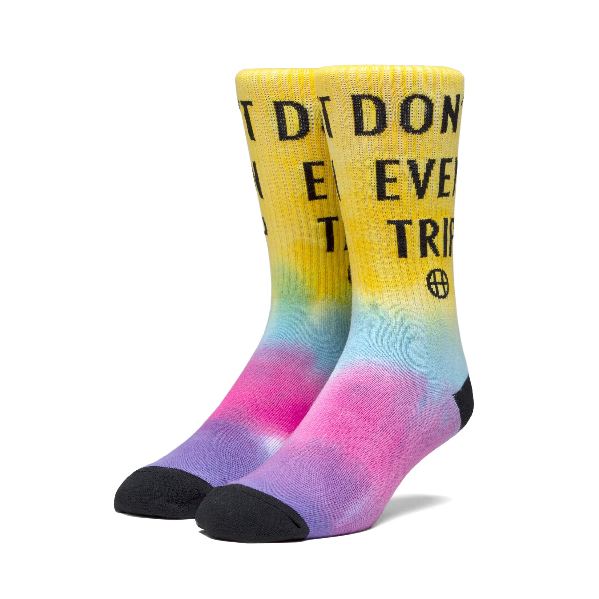 HUF Don't Trip socks in custom tie dye. Jacquard knit pattern with casual full cushion layer heel and toe.