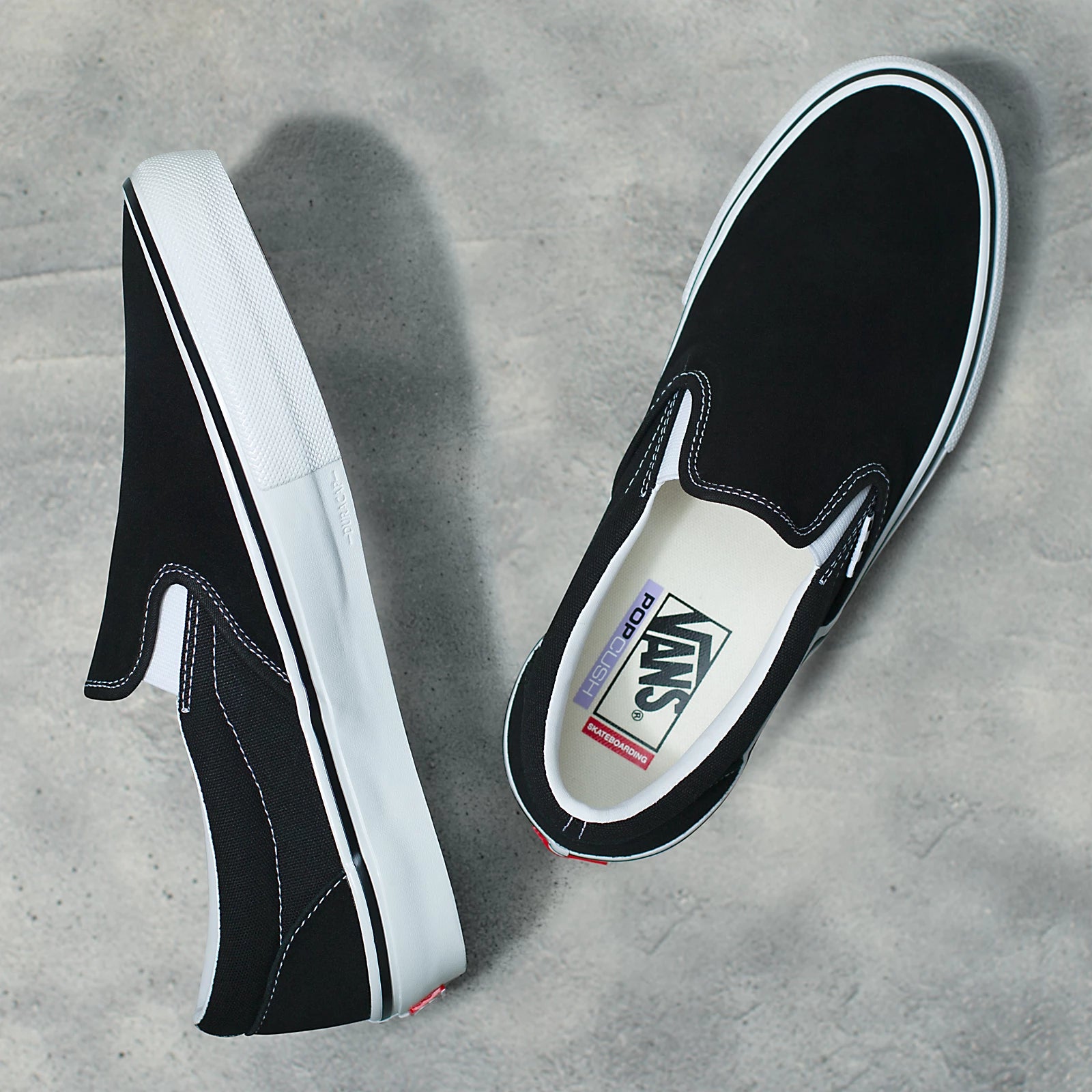 All New Skate Classics: Built Extra Tough on the Inside For Skateboarding Completely redesigned for modern skateboarding, the all-new Skate Classics collection delivers more of what skateboarders need to enable maximum progression. The repositioned DURACAP™ reinforced underlays and fully redesigned uppers, combined with a new two-part foxing tape that features a deeper knurl pattern on the toe, make the new Skate Slip-On durable enough to withstand daily skateboarding abuse. For more board control, the new molded heel counter and internal tongue straps lock in your feet. Even the gum rubber sole that made Vans famous has been elevated with the SICKSTICK™ rubber compound to deliver more grip and boardfeel. Plus, POPCUSH™ energy return sockliners provide superior cushioning and impact protection while helping to lessen leg fatigue for longer skate sessions. Internal heel stiffeners have also been added to provide more support and stability. The new Skate Slip-On’s updated foxing tape and sturdy suede and canvas uppers give you the iconic look you want while bringing all the performance benefits skateboarders demand. And be sure to look for the new checkerboard flag on the side to guarantee that you’re getting the best in style and modern skateboarding performance.